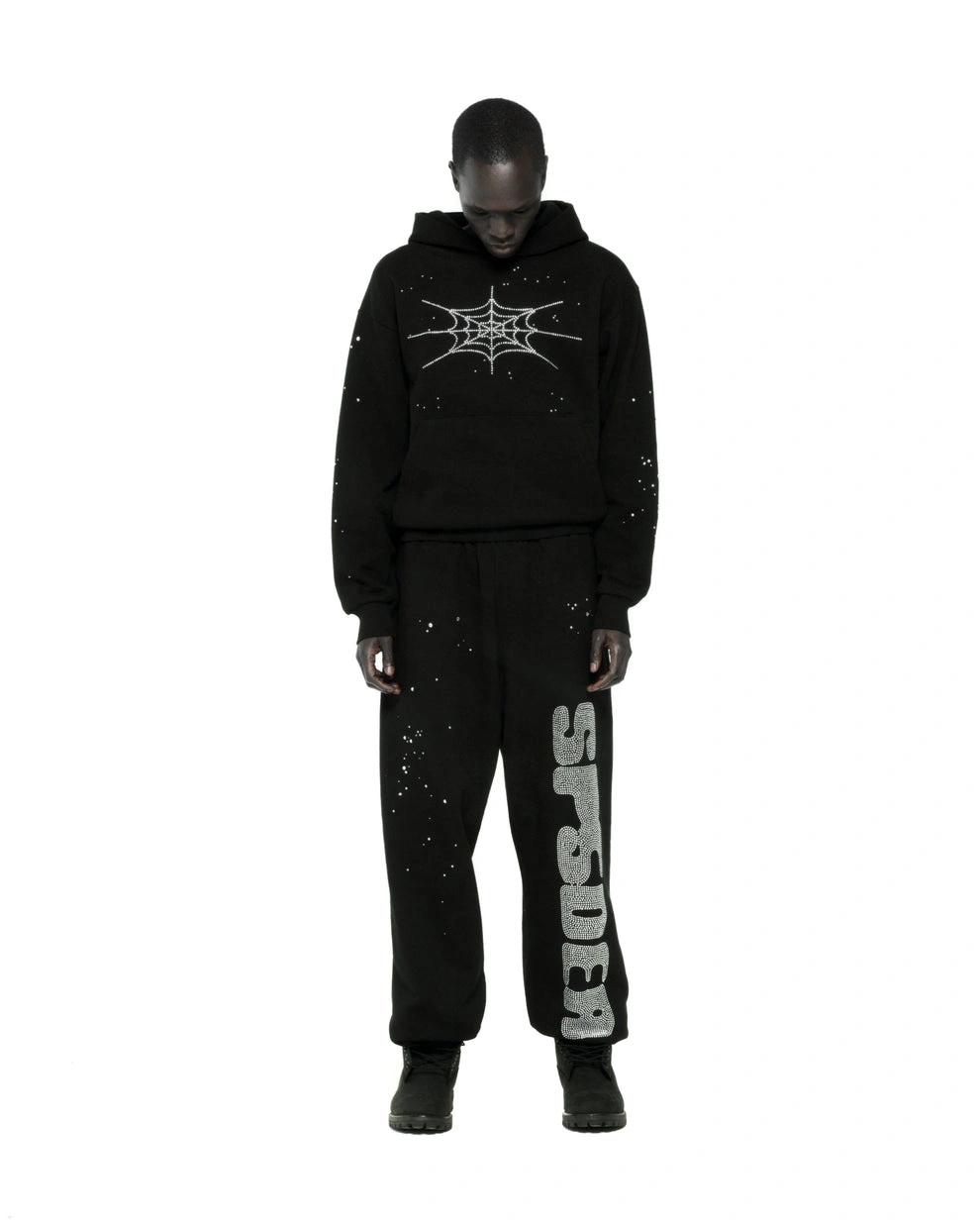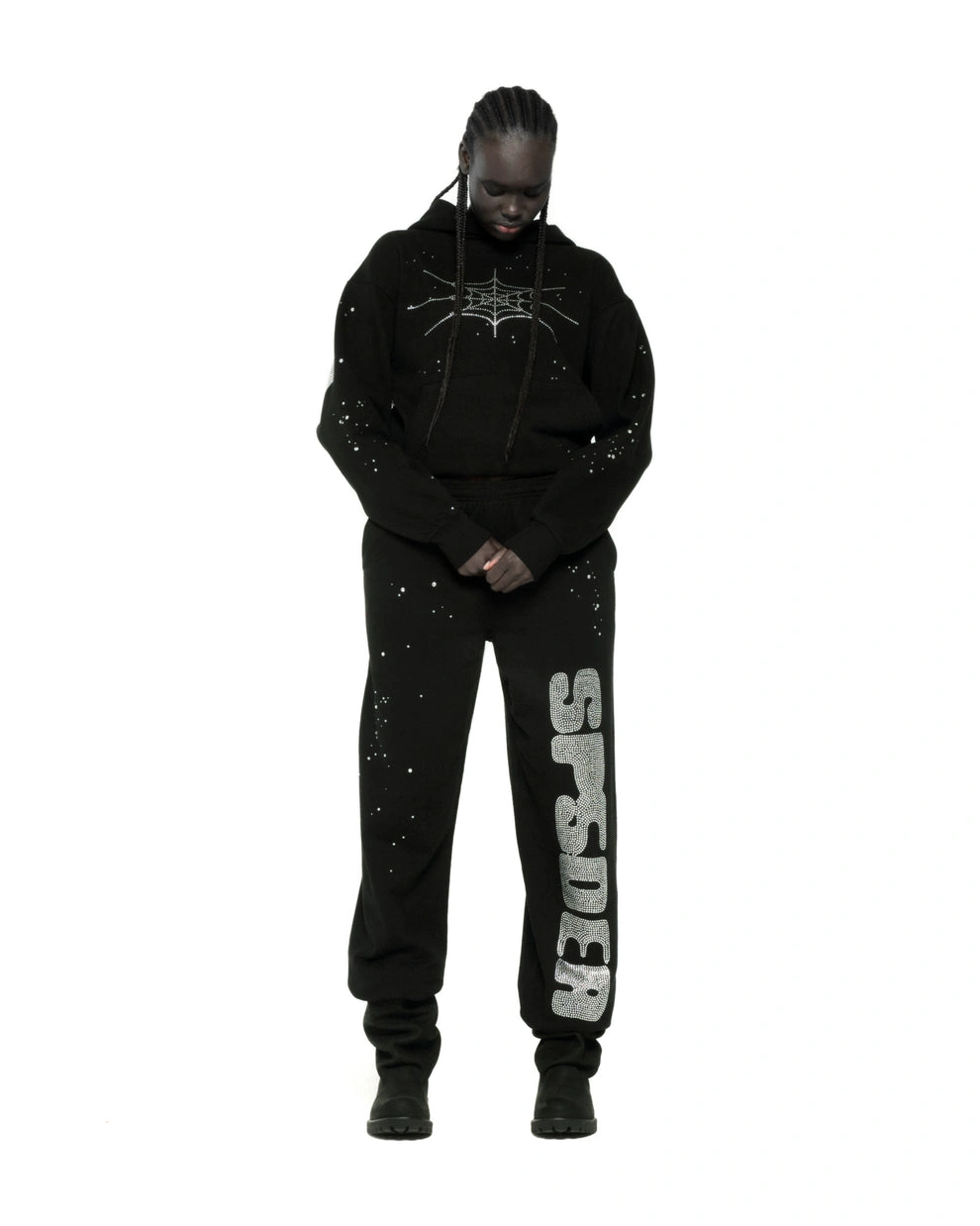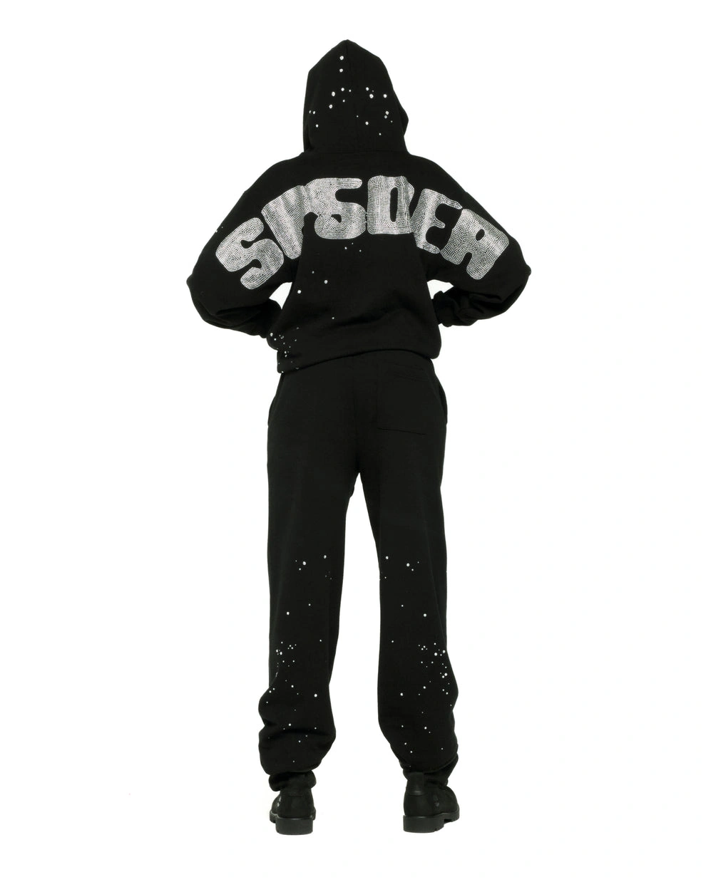 Sp5der / Shop Best Sp5der Hoodies / Sp5der Black Rhinestone Silk Tracksuit