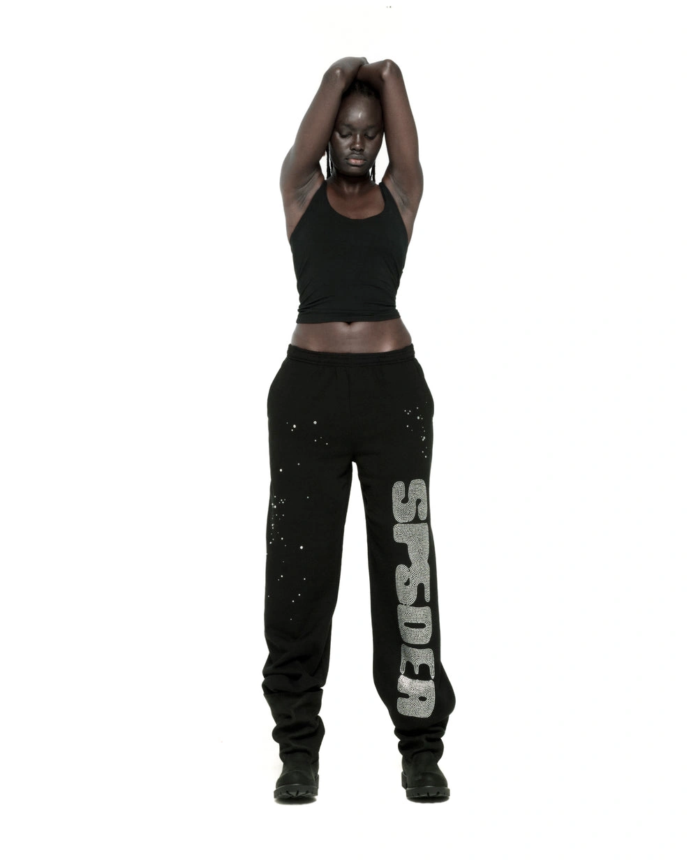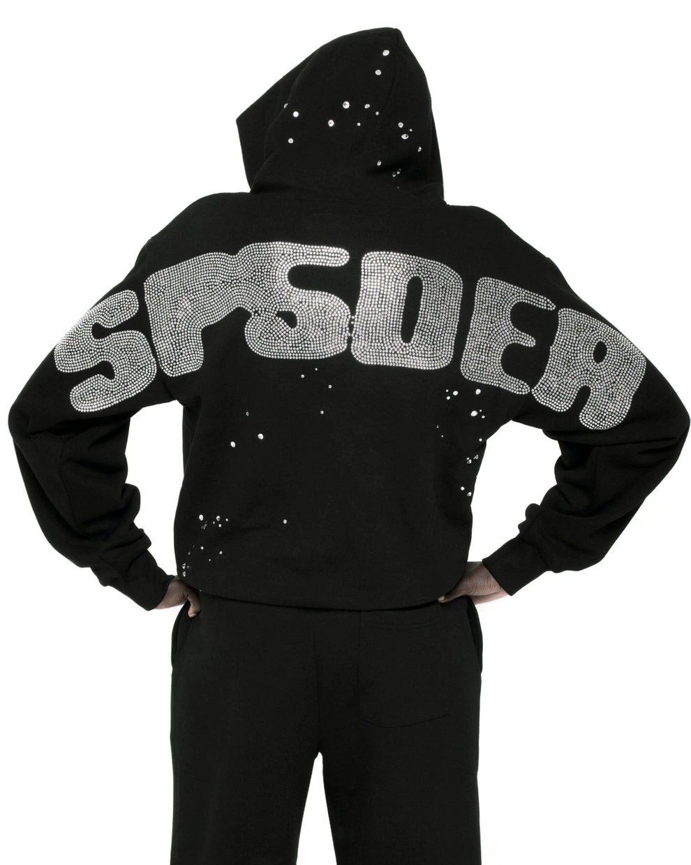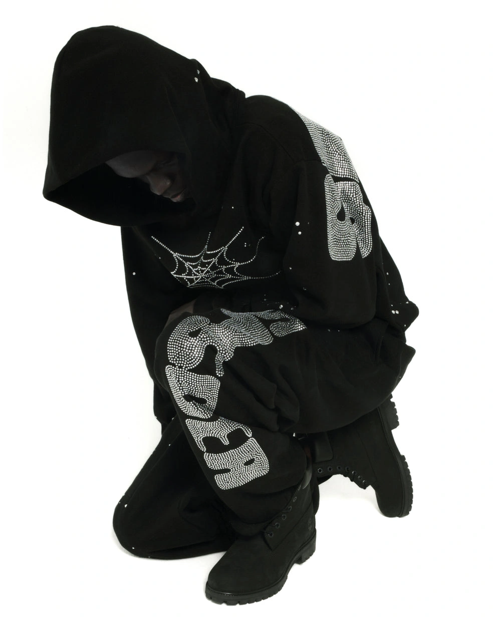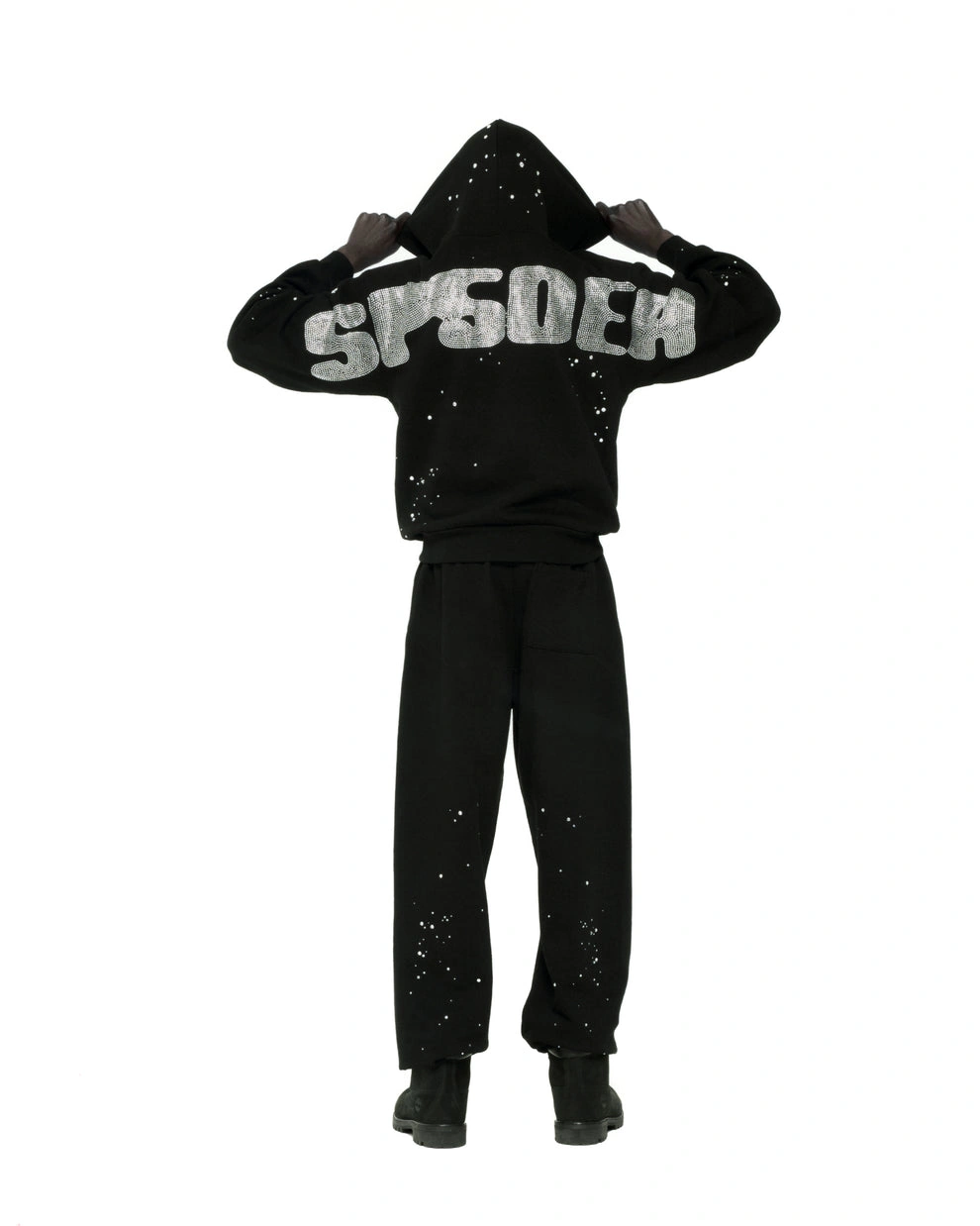 Sp5der / Shop Best Sp5der Hoodies / Sp5der Black Rhinestone Silk Tracksuit