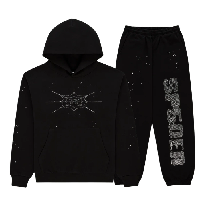 Be the first to review “Sp5der Black Rhinestone Silk Tracksuit” Cancel reply