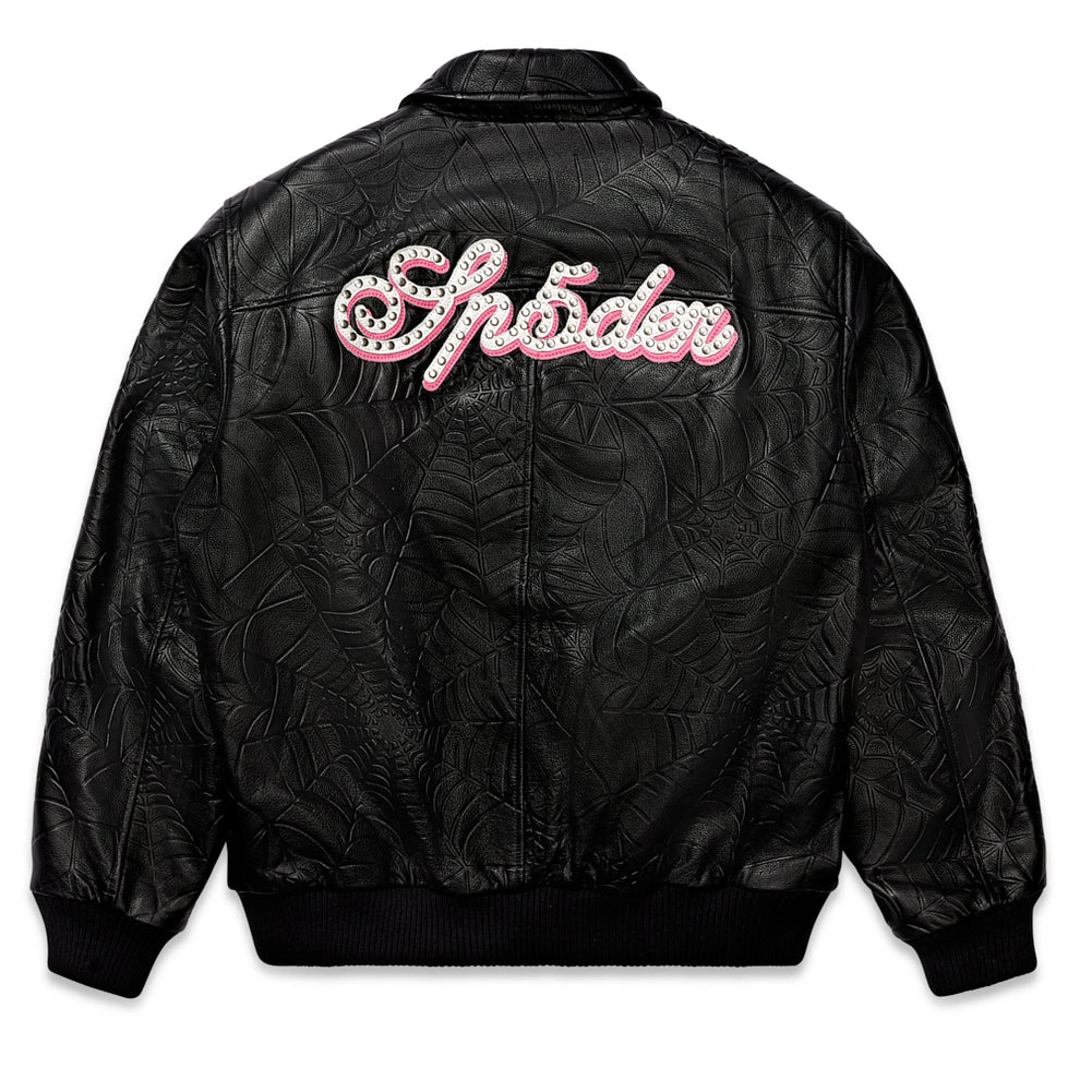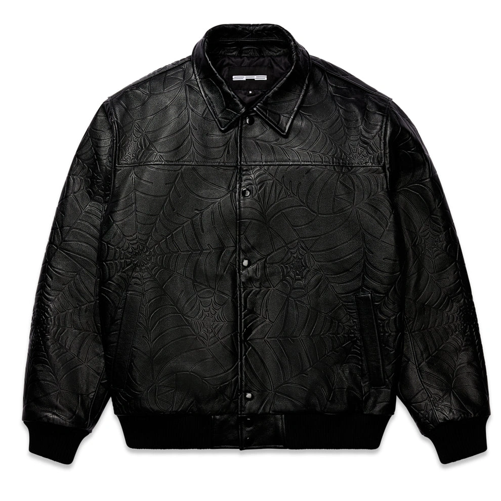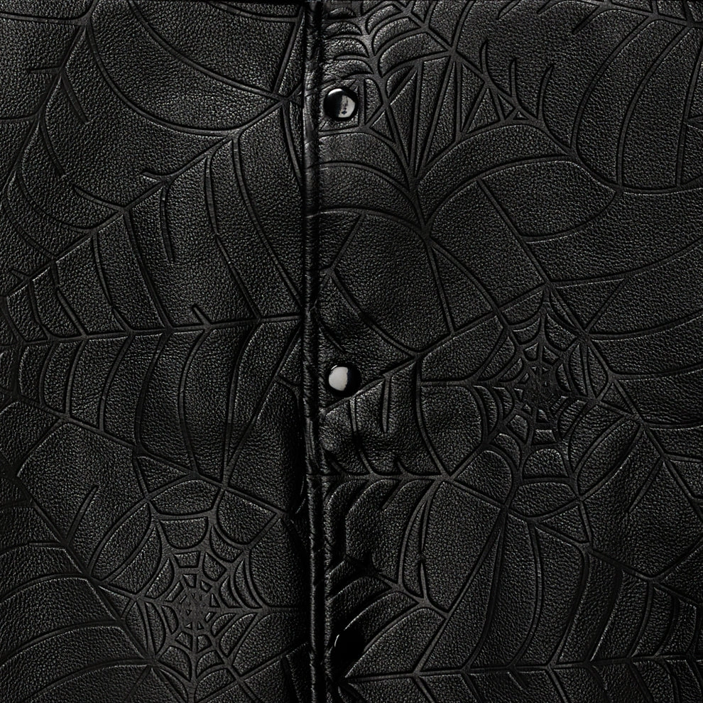 Sp5der / Shop Best Sp5der Hoodies / Sp5der Debossed Web Leather Jacket