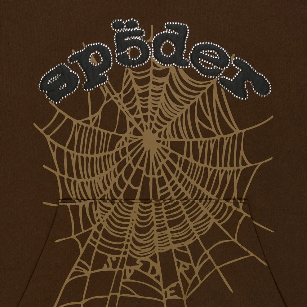 Sp5der / Shop Best Sp5der Hoodies / Sp5der Og Web Rhinestone Hoodie ‘Brown’