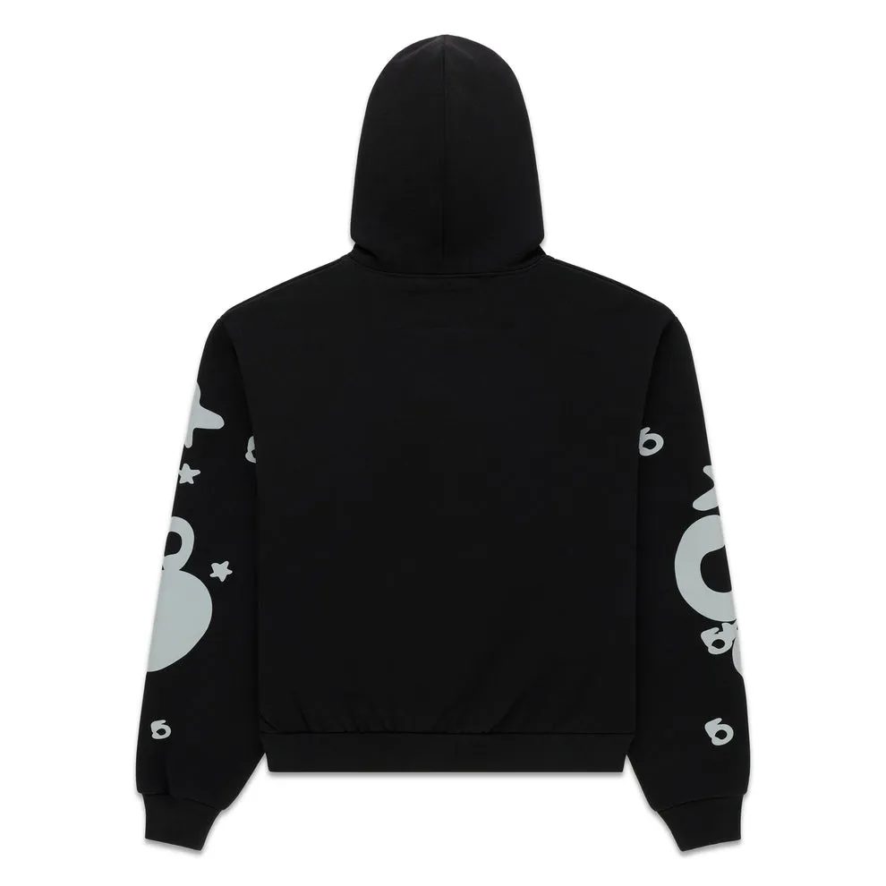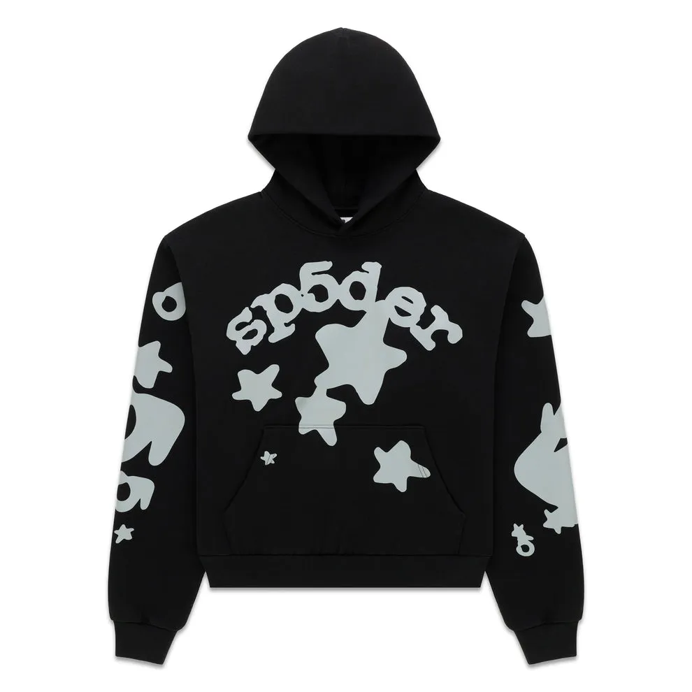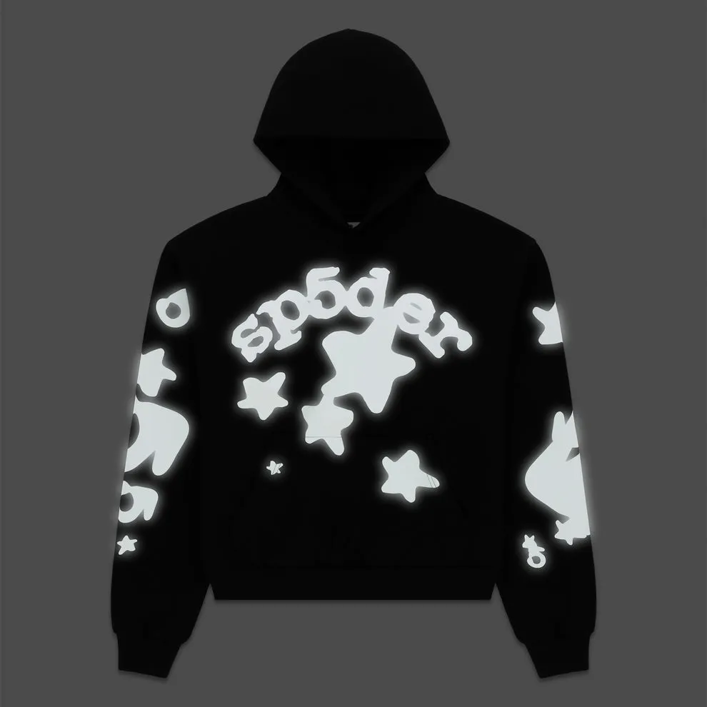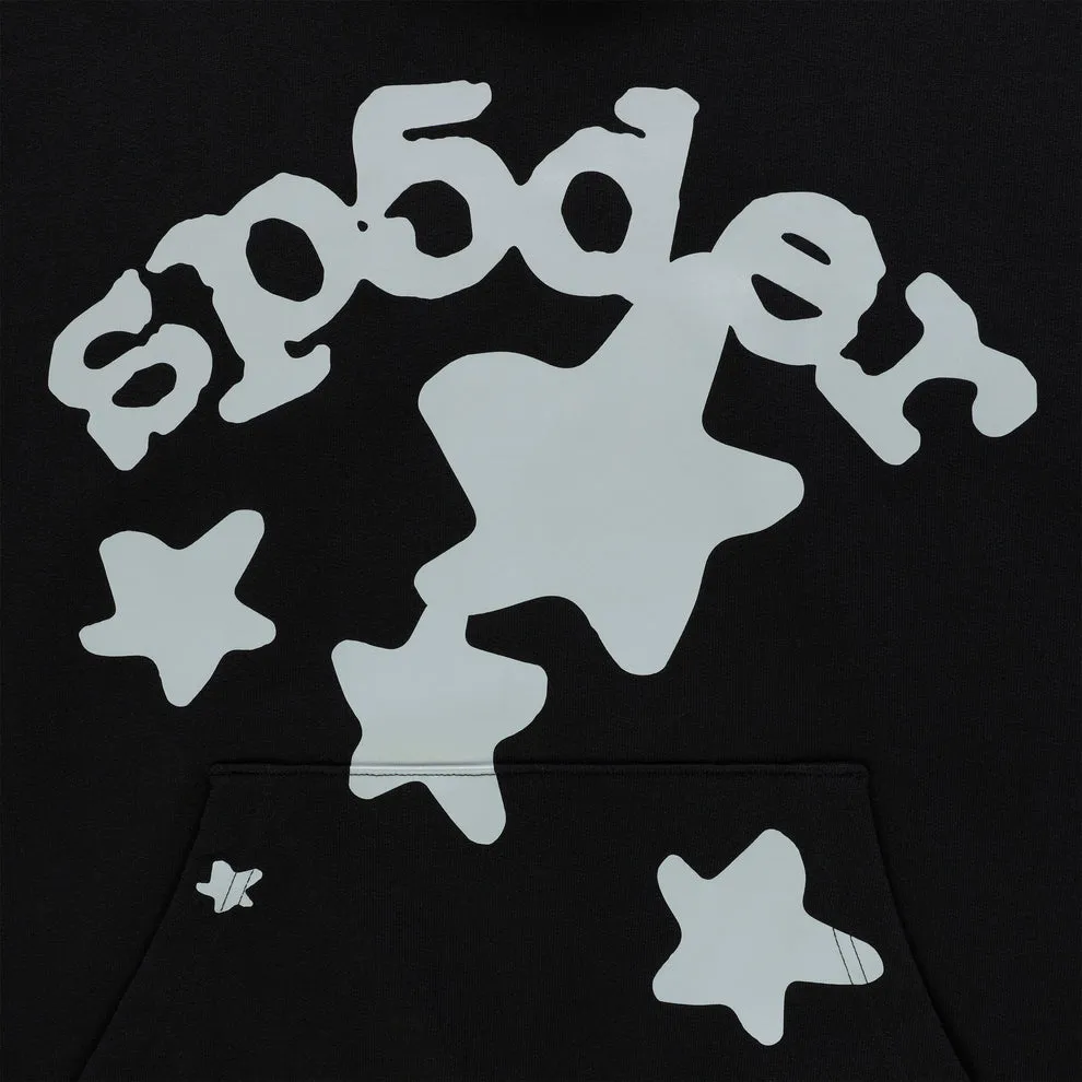 - ‘SP5DER’ and star print on front and sleeves.