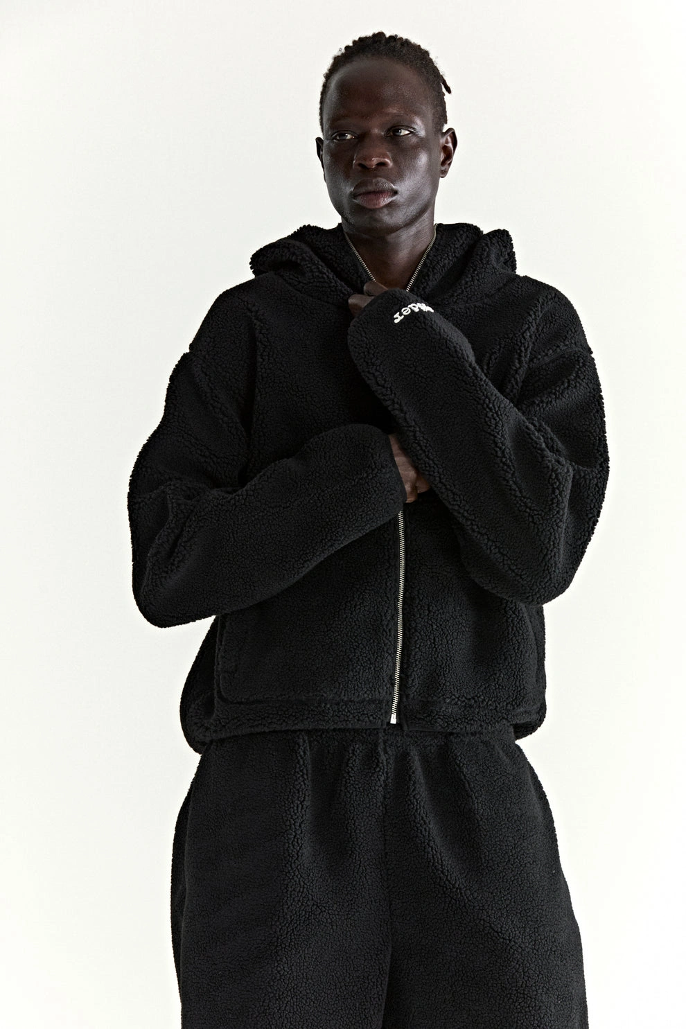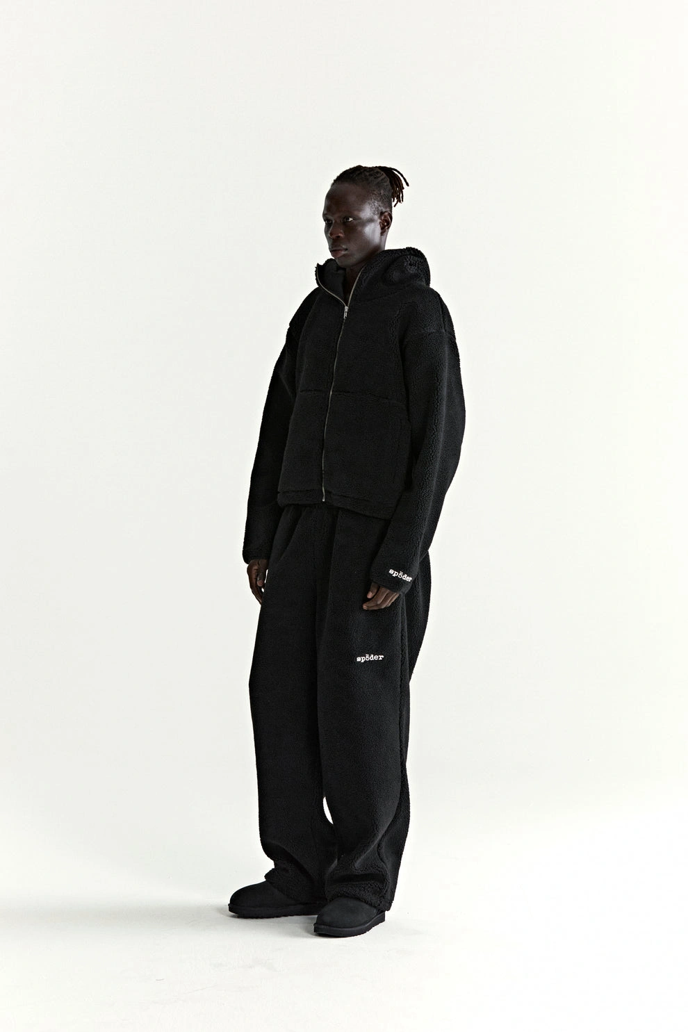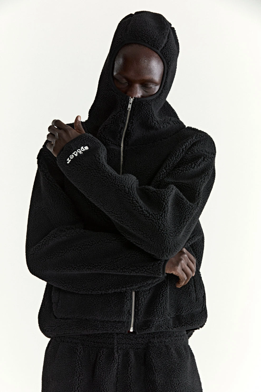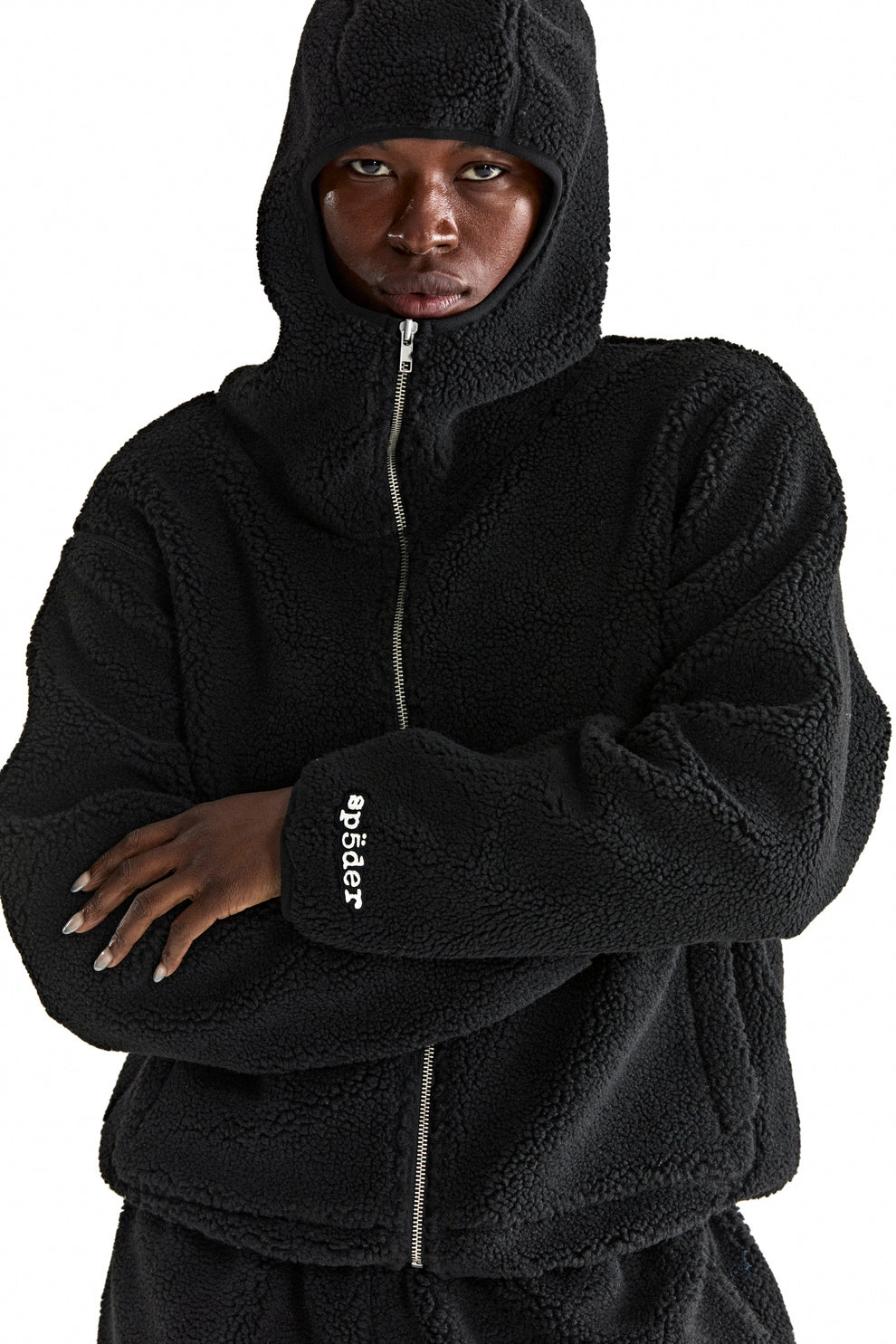 Sp5der / Shop Best Sp5der Hoodies / Sp5der Teddy Fleece Zip Up Black Jacket