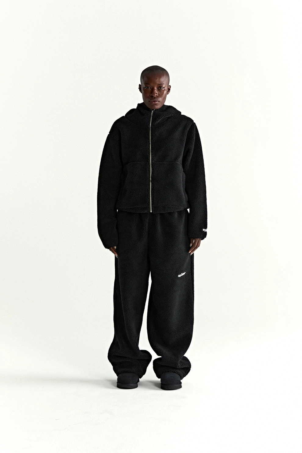 Sp5der Teddy Fleece Zip Up Black Jacket
