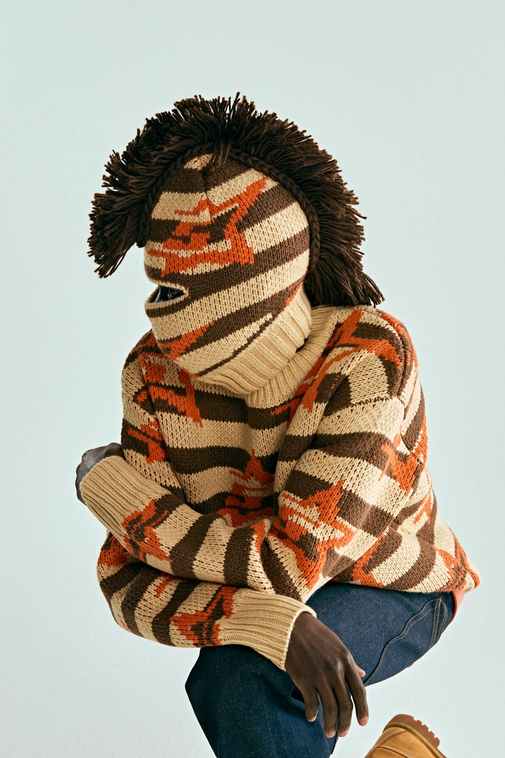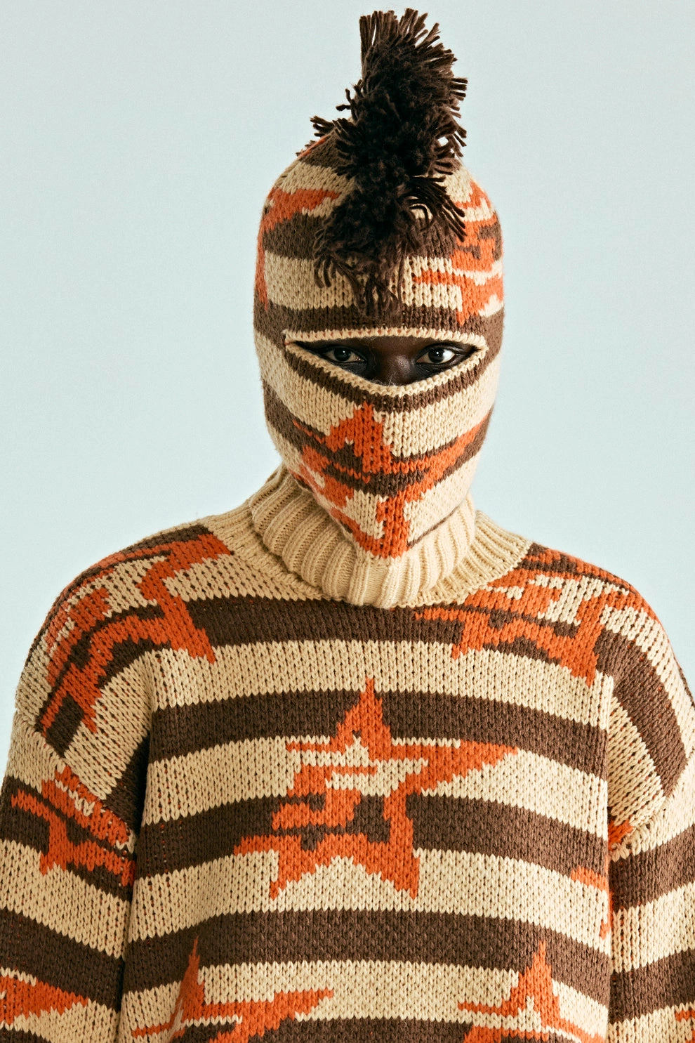 Mohawk fringe style detail at the crown of the balaclava.